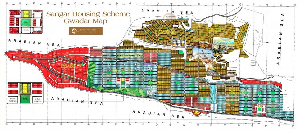 There are 2500 Acres total Area  in which the Total Area for Phase I to IV is 1900 Acres. The Total Area (Proposed Phase V & Future Extensions) is 600 Acres. Sangar Housing, Gwadar Current Most Accurate Prices You Can Trust